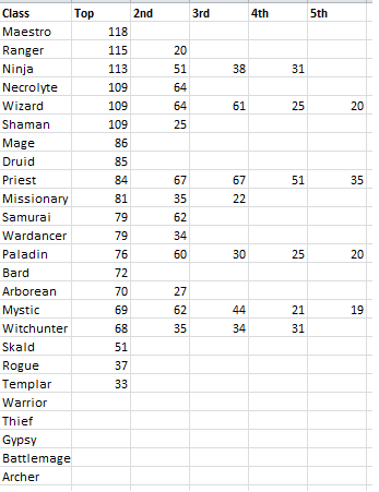 Top 50 Levels by Class: