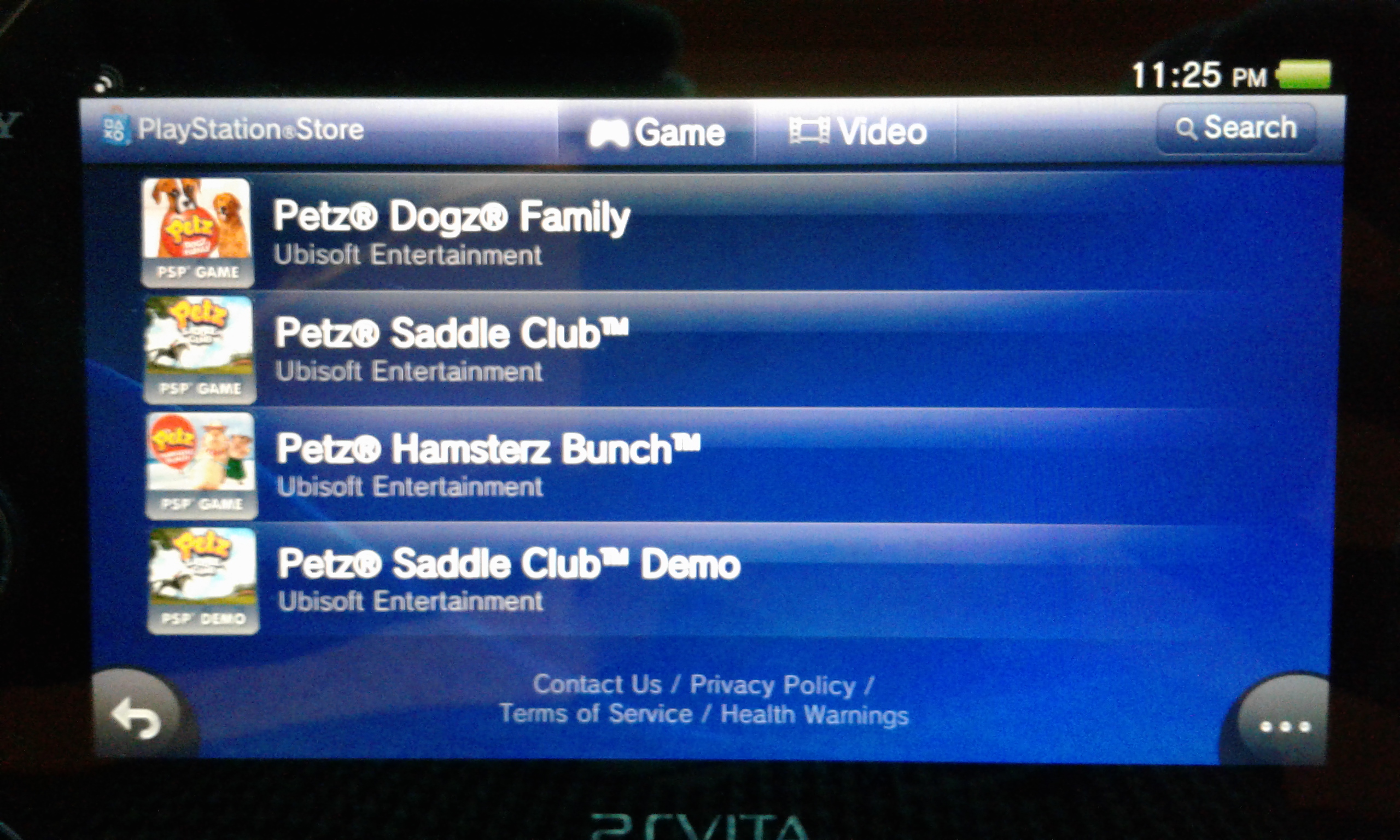 The next thing to do was download the demo game from the ps store. I did a search for "petz" and found the demo.